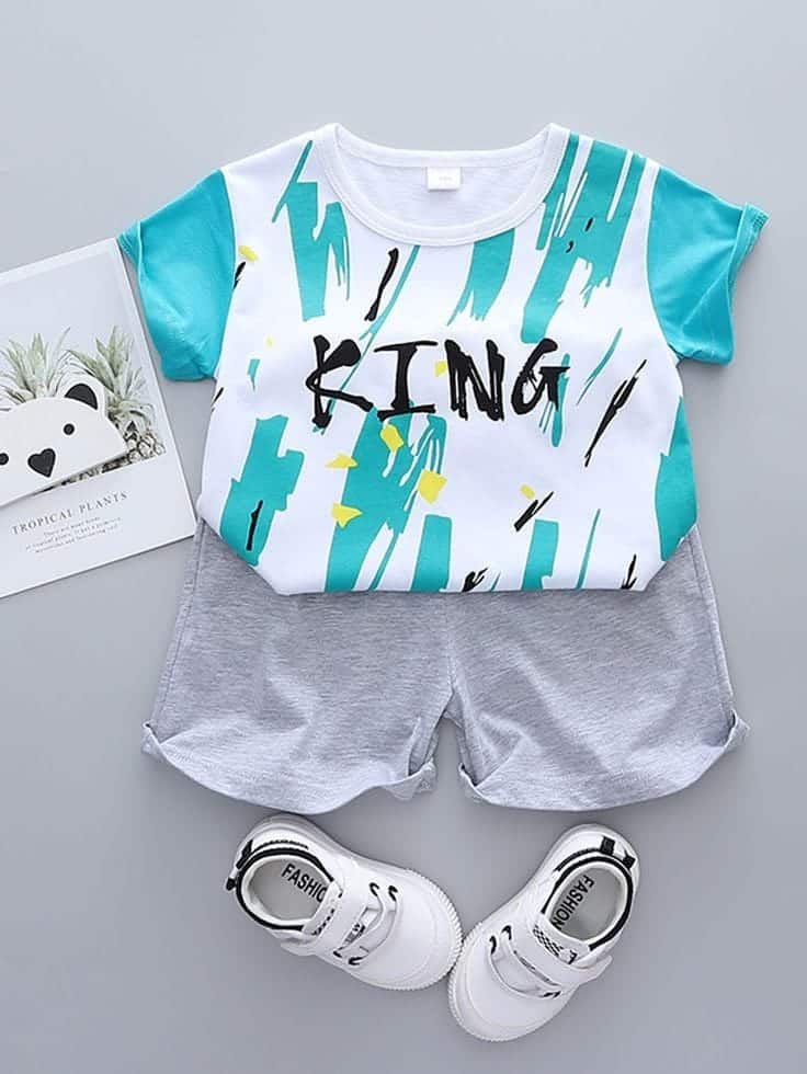 F 2 Pieces Combo – T Shirt And Pant Set- Design King- Print Color Light Sky